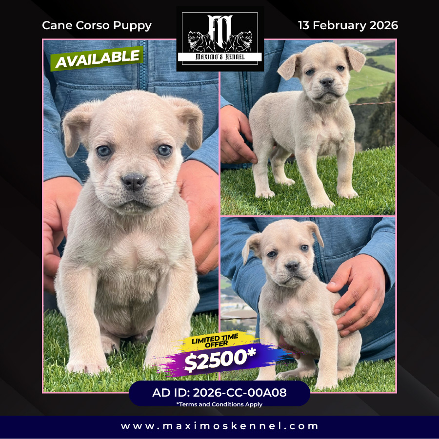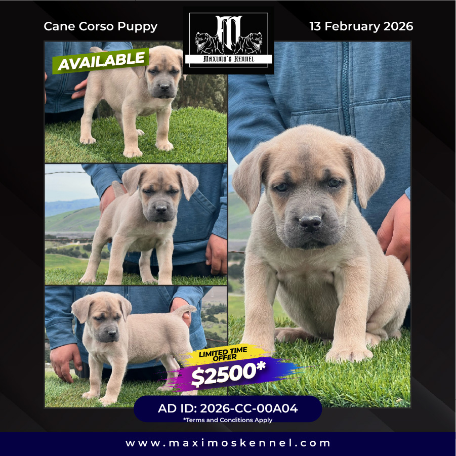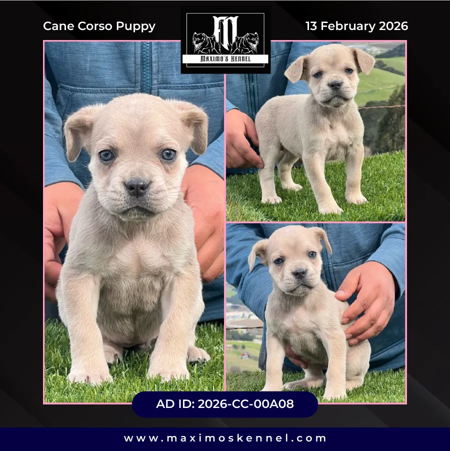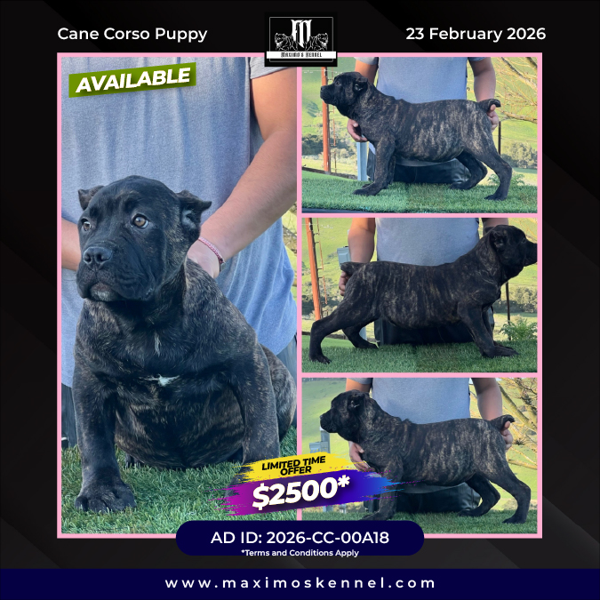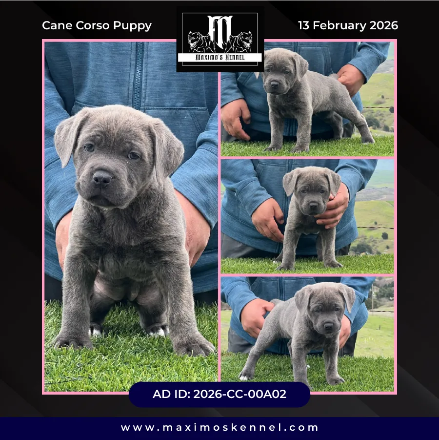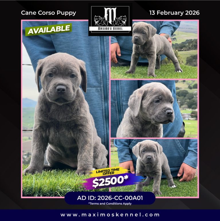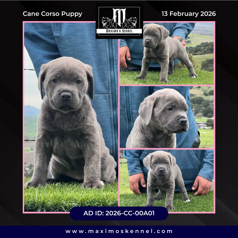 Cane Corso Mastiff puppies available in all standard colors – Black, Blue, Black Brindle, Chestnut Brindle, Fawn, Formentino. We have young puppies, more mature pups at several months of age, and sometimes young adults for sale.