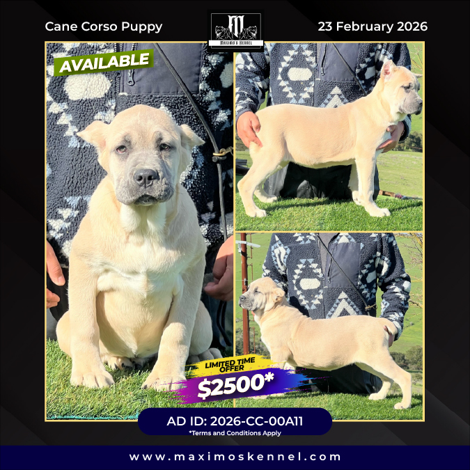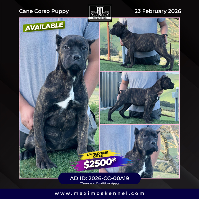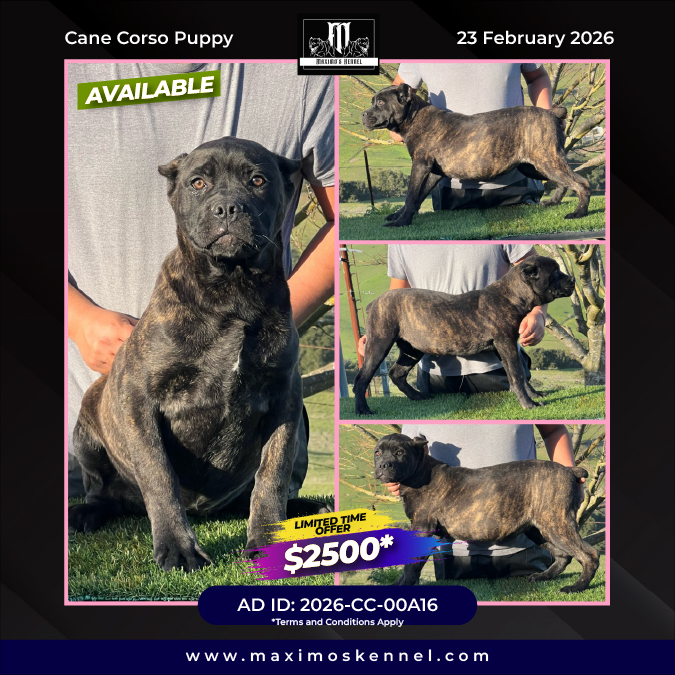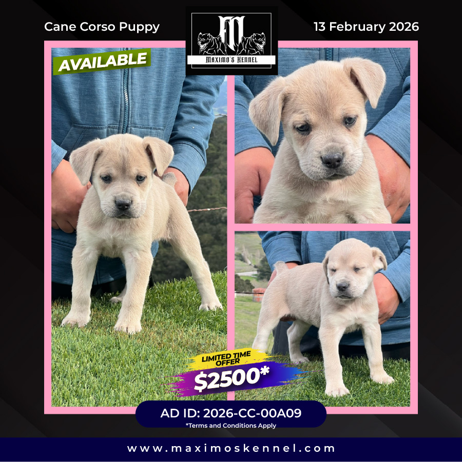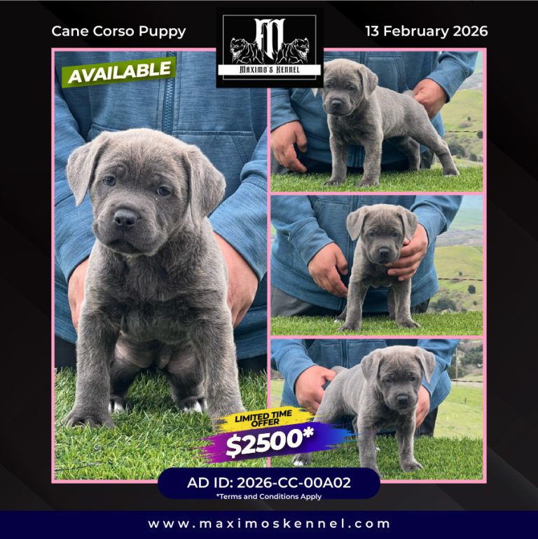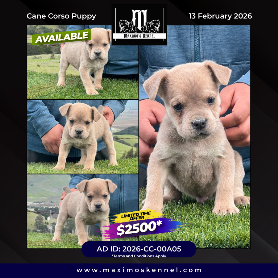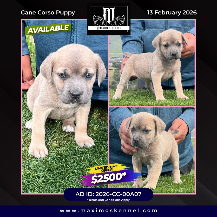 Cane Corso Mastiff puppies available in all standard colors – Black, Blue, Black Brindle, Chestnut Brindle, Fawn, Formentino. We have young puppies, more mature pups at several months of age, and sometimes young adults for sale.